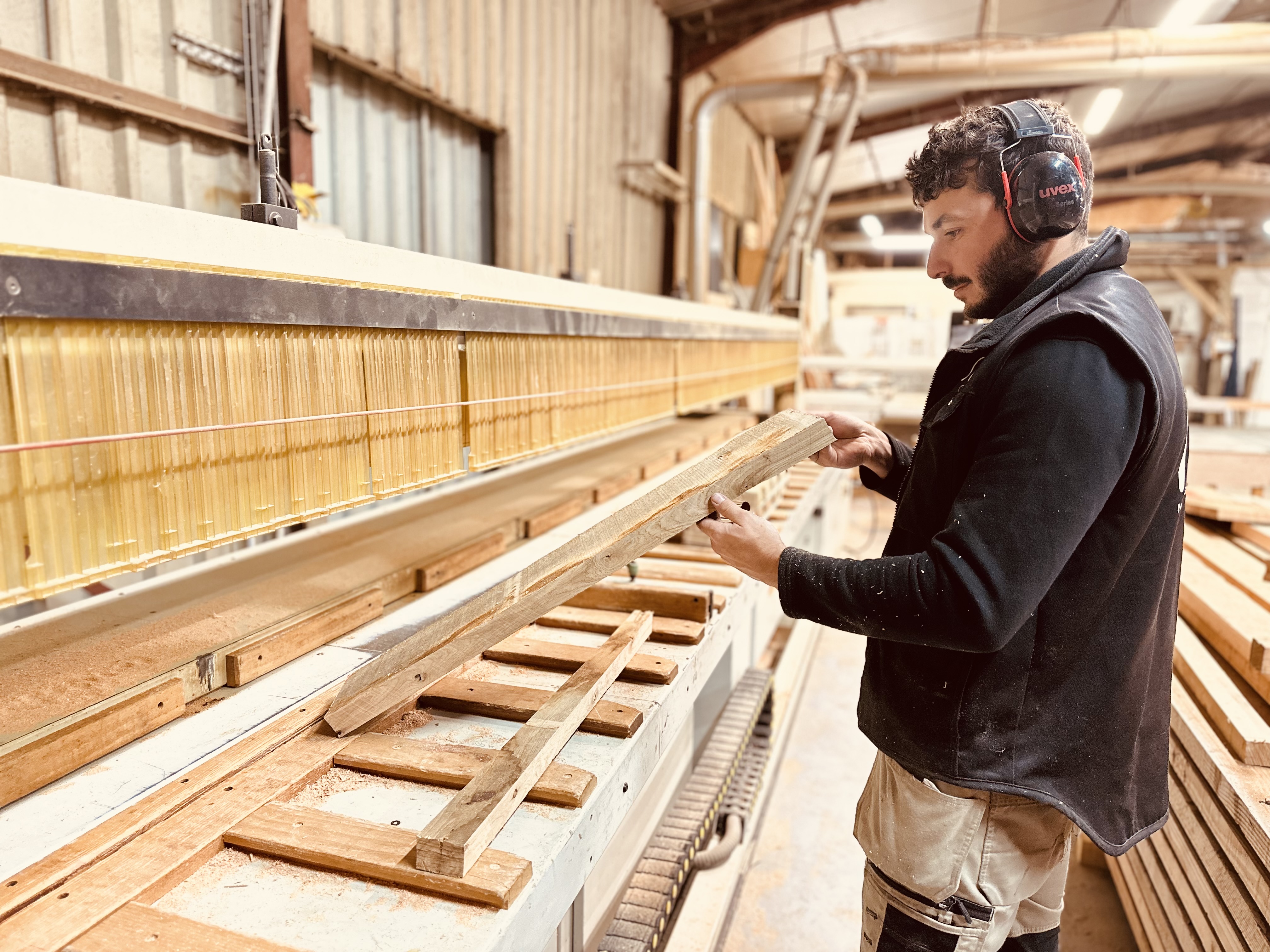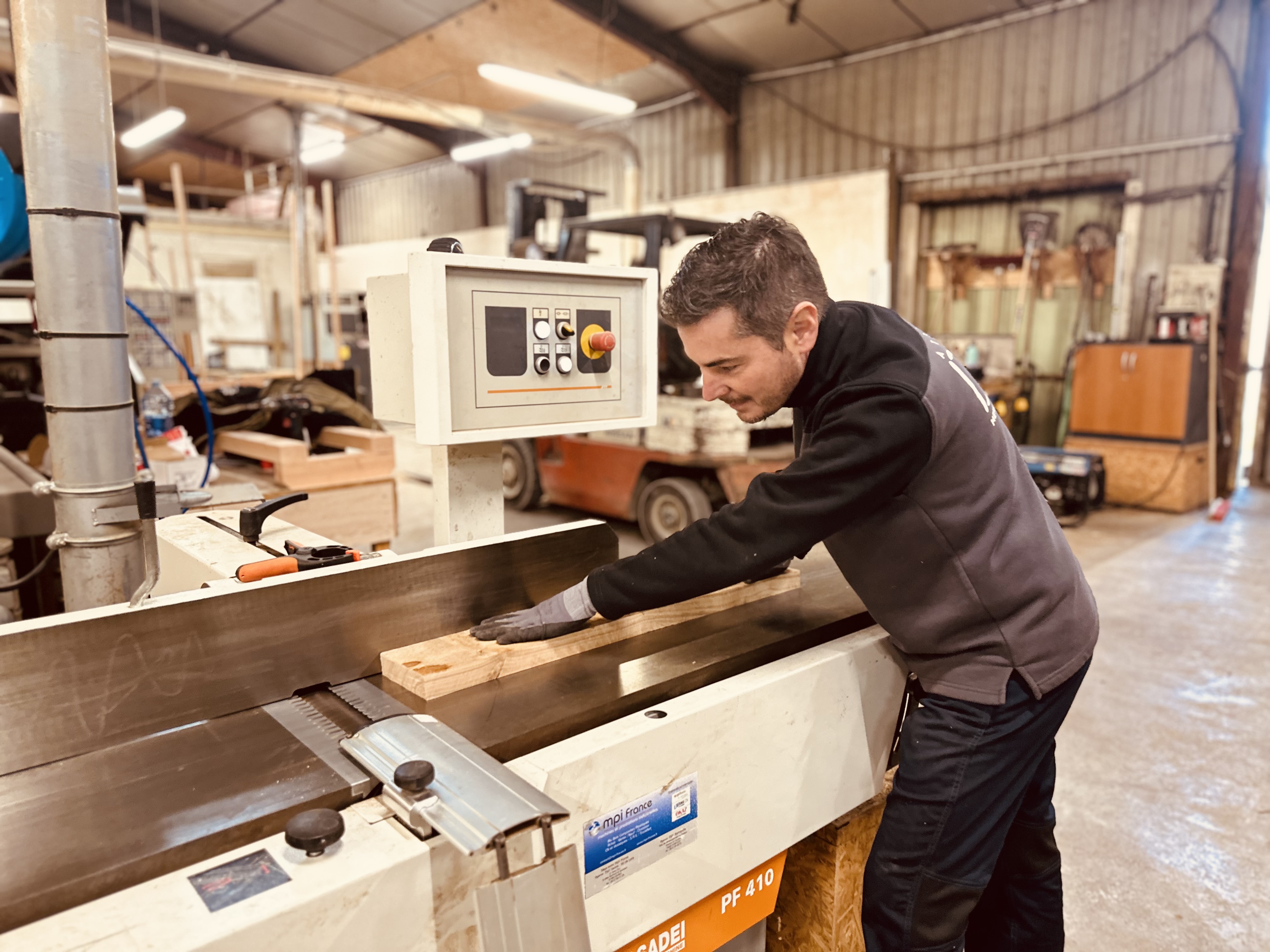 Notre atelier de plus de 700 m² est équipé d’un parc machines complets. Cet équipement nous permet de travailler le bois sous toutes ses formes et de réaliser des créations sur mesure, de la plus simple à la plus complexe. Nous disposons également d’un grand stock de bois afin de répondre avec réactivité à vos demandes.