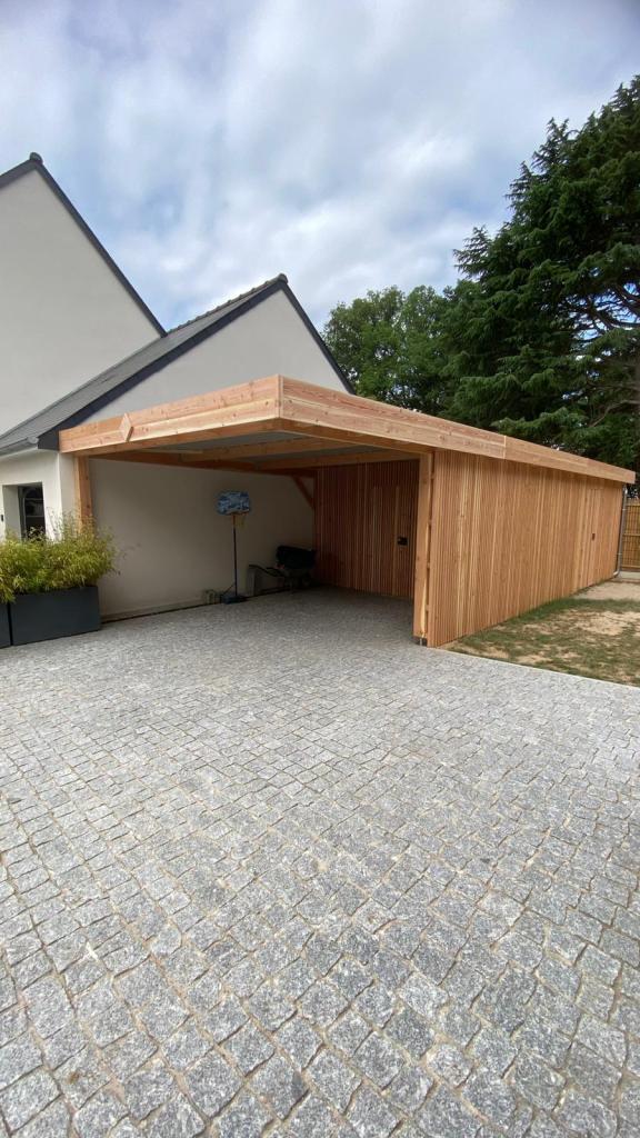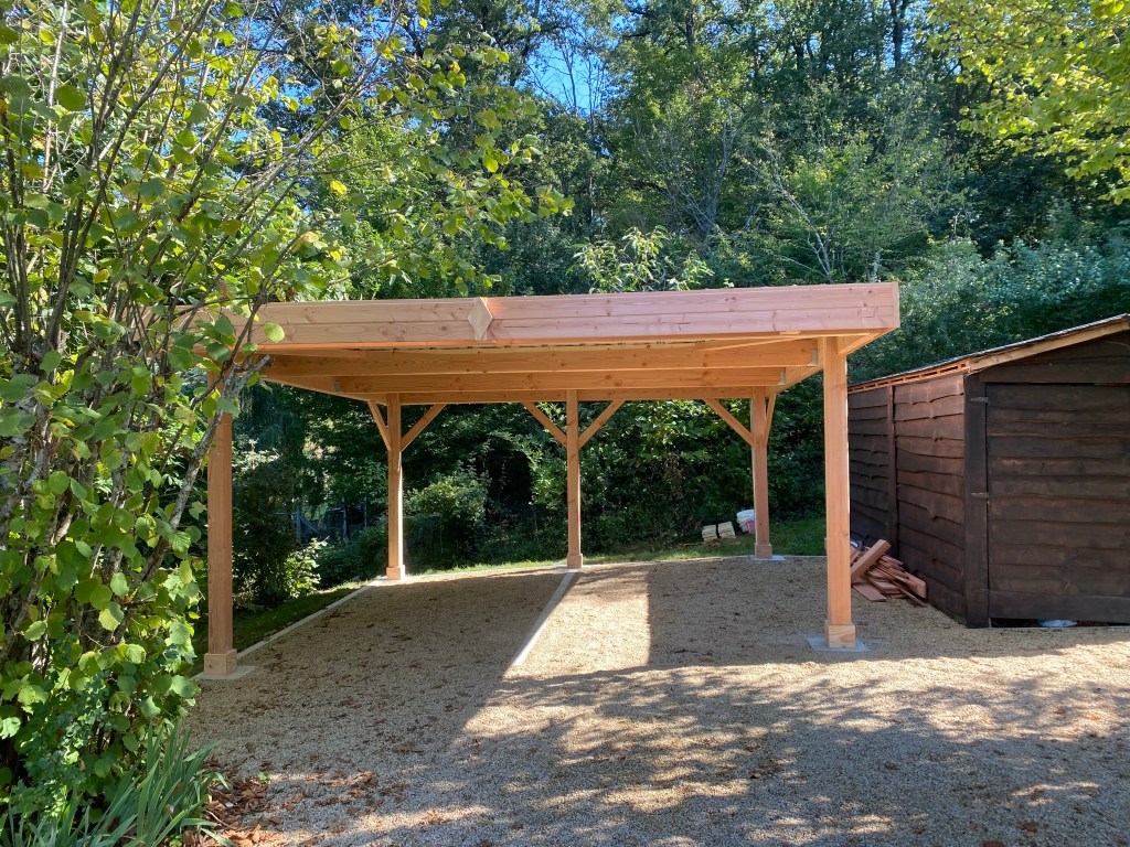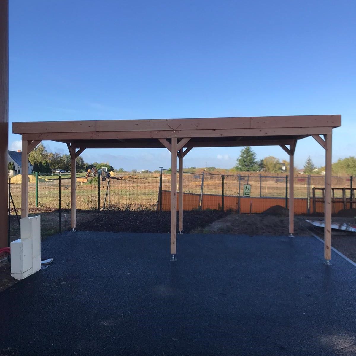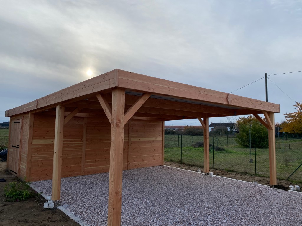 Nos carports sont principalement fabriqués en bois Douglas, avec un toit plat en tôle bac