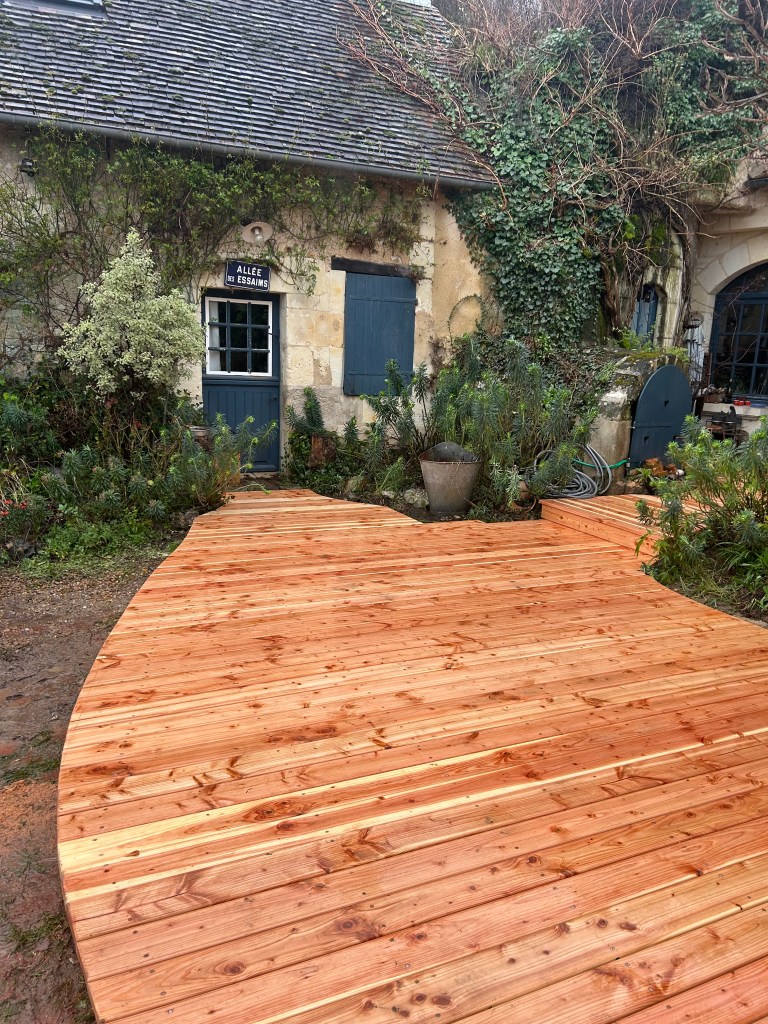 Toutes nos terrasses sont construites sur des plots, avec des lambourdes en bois, assurant